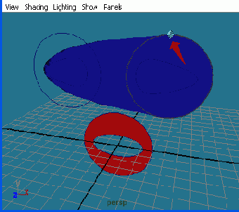 Для того чтобы сшить поверхности двух глаз, передвиньте ромбовидный манипулятор к центру лица